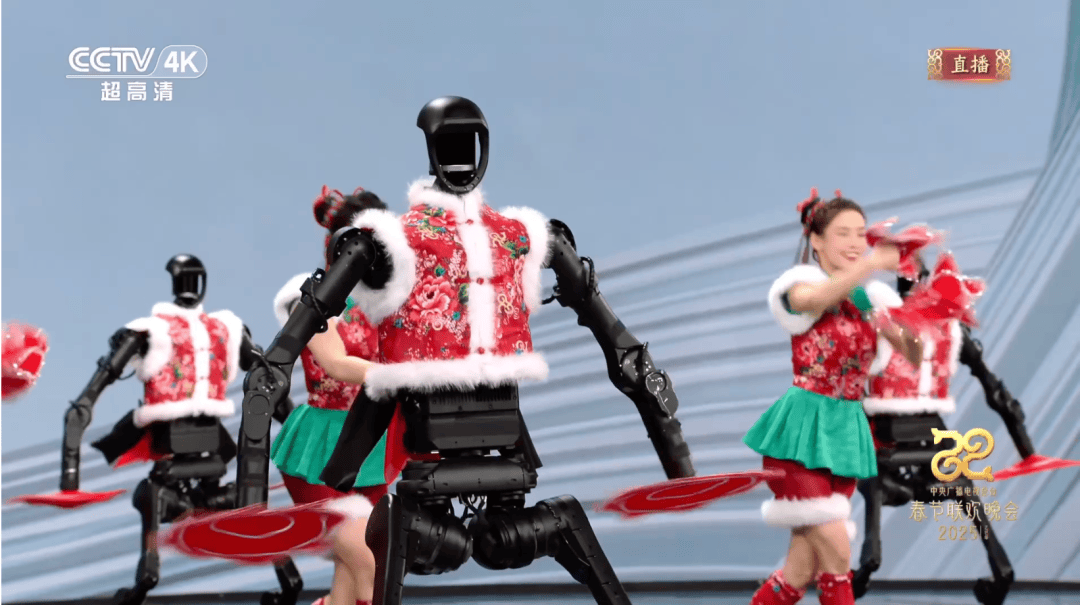 这些机械人还正在扭秧歌、转手绢。